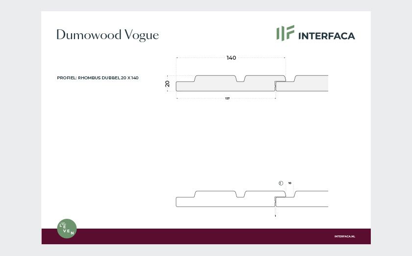 Het Dubbele Rhombus profiel bestaat uit twee afgeschuinde banen per plank, gescheiden door een smalle groef die doet denken aan een schijnsponning. Hierdoor oogt de gevel als opgebouwd uit smalle, losse latjes, terwijl de montage snel en efficiënt verloopt met brede delen.